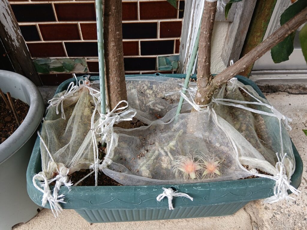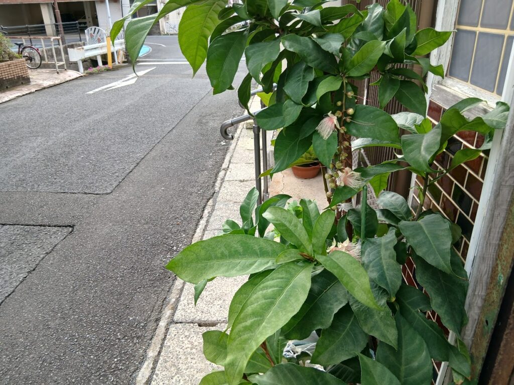ワクワクしながら数日過ごしていました。毎朝、水をまきながら楽しみにしていました。咲いたら匂いでわかるので花の色は白かな?ピンクかな?とつぼみがふくらんでくるのを見ていました。雨が降った日、いつもより遅く外に出たら、なんと咲いた後に散って下に落ちていました。ガーン