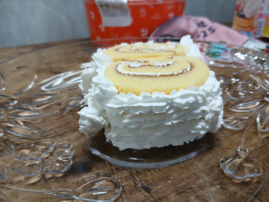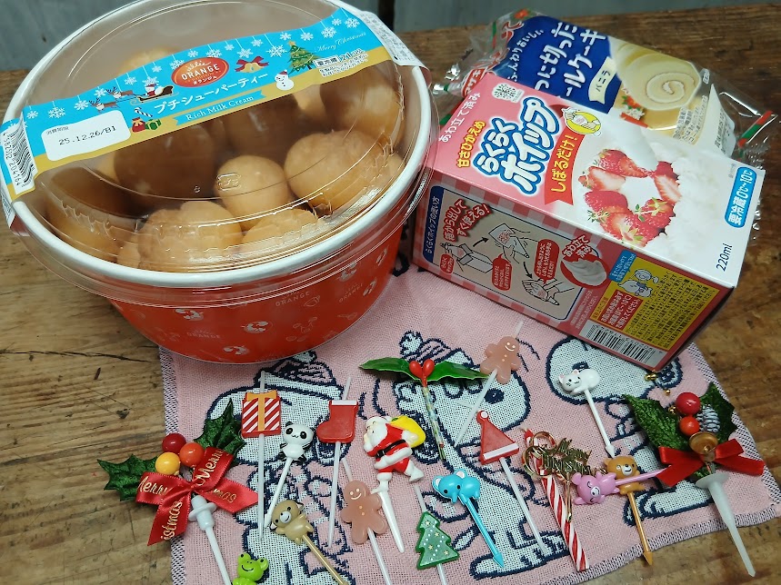 今年も後10日程となった22日にオーナーが緊急入院となり、ケーキを買いに行く気持ちになれなかったが、やっぱり少し雰囲気を味わいたくて、買い物に行ったついでに見つけたものでなんちゃってケーキを作りました。