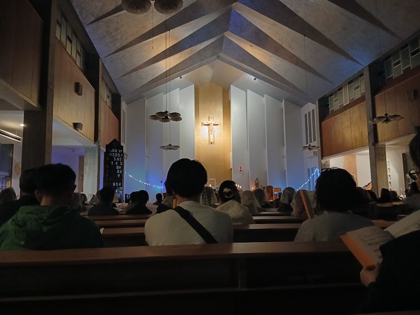 24日は市役所のイルミネーションを見てから、聖心教会のミサに行ってきました。信者ではないのですが、建物の雰囲気と静かな空間が好きなのでこの時期だけでなく、ときどき立ち寄って心を落ち着かせられる場所です。
