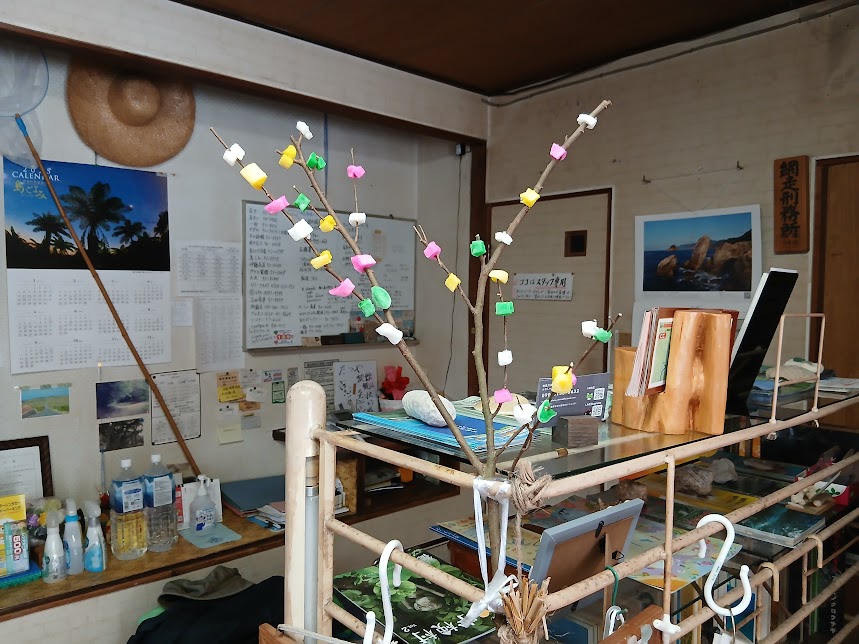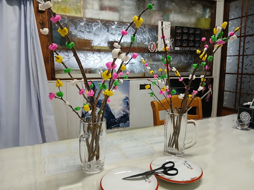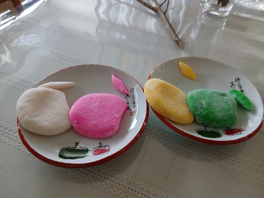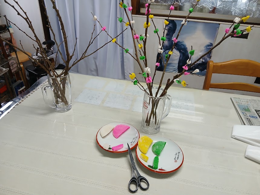 買い物に出ると、今度はカラフルなお餅が目に入ります。スーパーや商店やお花屋さんで売っています。1月14日は「ナリムチ」です。ブブ木(リュウキュウエノキ)にお餅をつけて、五穀豊穣・商売繁盛・家内安全・無病息災などを願って、お墓・仏壇・床の間・玄関に飾ります。お店によってお餅の色合いが違ったり、台座がついたものや、出来上がったものも売っていますが、我が家は毎年ブブ木と餅を買ってきて作ります。今年もたくさん出来ました。