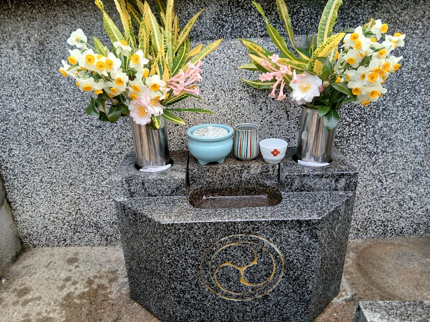 叔母の家の庭に水仙と椿が綺麗に咲いていたので持って行きました
